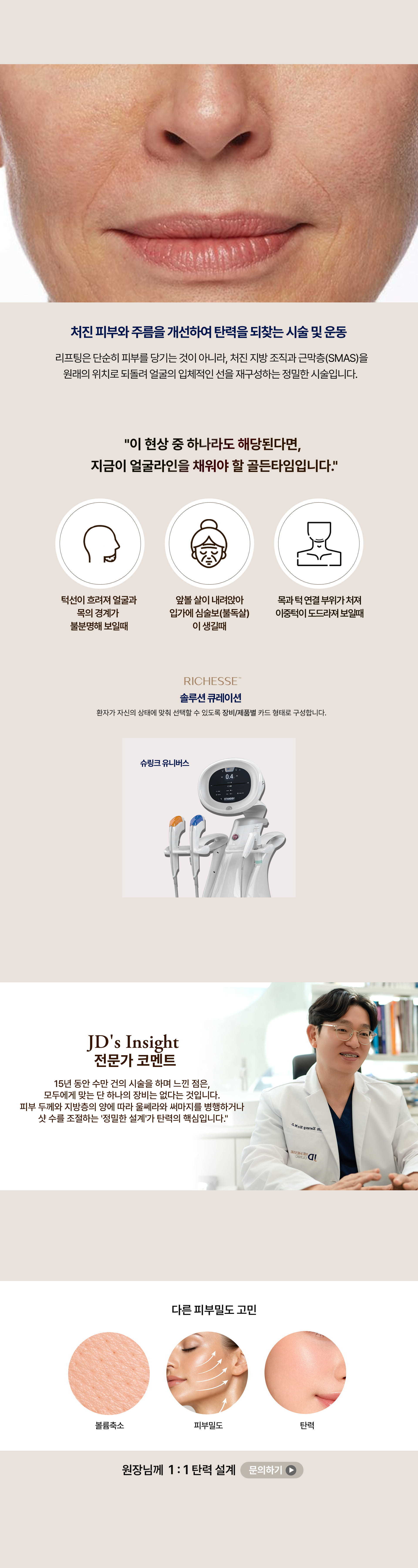 "무너진 실루엣을 바로잡다. 15년의 숙련도가 만드는 흔들림 없는 리프팅."
